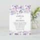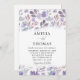 Boho e Rustic inspiraram convite para o casamento floral. Apresentando flores pálidas azuis e púrpuras de aquarela e folhagem em fundo branco com borda texturizada contemporânea. Muito fácil de personalizar para se adequar às suas informações pessoais.