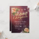 Celebração de Casamento Moderno / Modelo de Cartões Chá de panela. Floral Elegante de Aquarela e Luzes de String no Fundo Vermelho Borgonha. Um Design perfeito para o seu grande dia. Todo estilo de texto, cores, tamanhos podem ser modificados para ajustado das suas necessidades!