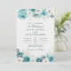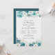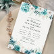 Este convite de casamento floral em tom de azul-verde apresenta flores silvestres em aquarela suave dispostas em uma moldura botânica delicada. O fundo branco-desligado e a tipografia refinada criam um visual atemporal e elegante, perfeito para celebrações românticas em jardins.