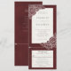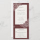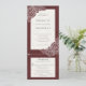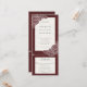 Combinação de convite de casamento com fundo texturizado vermelho veludo e papoulas desenhadas à mão em branco. O cartão de resposta é um cartão postal cortado, com opções de refeição. Uma solução moderna que inclui tudo, para evitar que o cartão de resposta incluído acabe por engano sob o refrigerador. No verso do convite há uma informação opcional de Detalhes. *O design pode ser personalizado com diferentes fontes, cores ou tipos de papel.