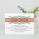 Convocação de Casamento Elegante e elegante Deco Flourish apresentando uma fronteira de faixa laranja rico. Esta design de na moda é a escolha perfeita para um casamento inspirado em deco. Fácil de personalizar, basta adicionar os detalhes do casamento nos campos de texto fornecidos. Clique em "Personalizar" para encontrar mais opções de personalização.