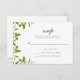 Esses cartões de RSVP de casamento elegantes apresentam um delicado desenho de folhas botânicas verdes contra um fundo branco suave.