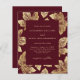 Convite de Casamento Folhas Douradas e Vermelho Burgundy com Foil.