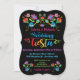 Convites FIesta Mexicanos coloridos e bonito. Características desenhadas à mão em flores bordadas e maracas em fundo preto de quadro negro. Ilustração desenhada à mão por McBooboos. Muitos itens correspondentes a este design! Bordado Faux, este é um desenho