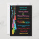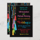 Convites de casamento para FIesta tasBruxelas, coloridas e bonito. Pode mudar a redação para qualquer evento temático Fiesta. Recursos desenhados à mão em pom-poms bordados com tesouras coloridas e pequenos milagros em fundo preto. Ilustração desenhada à mão por McBooboos.