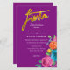 Esta impressionante convite de casamento temática de Fiesta também pode ser utilizada para outros eventos, incluindo chá de panela ou para casais, festa de noivado, jantar de ensaio, festa de aniversário, festa de aposentadoria e mais. Basta editar o texto conforme necessário. Pode ser usada como um convite bilíngue, com campos de texto em ambos os lados para eventos temáticos mexicanos ou espanhóis. Ótimo custo-benefício para um design de qualidade! Apresenta lindas flores em estilo de arte popular.