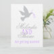 Uma pomba simples de cinza dupla com duas fitas roxas para o casamento. Projetado para um casamento formal hospedado pelo casal para casar. Personalizar com seus próprios detalhes contém detalhes de RSVP. Foi projetado para funcionar com o RSVP, veja abaixo.
