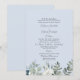 Convite de Casamento Formal de Noiva com Flores em Azul Poeira para Dois Locais. Flores azuis e brancas.