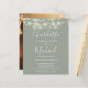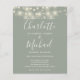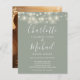 Apresentando luzes de string bonito e nomes de estilo de assinatura. Este elegante convite de casamento verde de sábio pode ser personalizado com seus detalhes de casamento em carta chic e foto especial no verso. Projetado por Thisnotme©