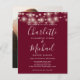 Com luzes bonito de cordas, seus nomes de estilo de foto e assinatura, este convite de casamento elegante e burgundy de orçamento pode ser personalizado com suas informações em letra chic. Projetado por Thisnotme©