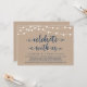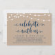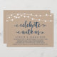 Lindas Luzes de Corda de Fazenda Rústica Moderna, fonte de letra cursiva azul-marinho em fundo de papel Kraft, Anúncio de Casamento Fuga, cartão de convite (Celebre conosco). Isto é perfeito para a recepção do seu casamento e festa de celebração pós-casamento. Adicione seus detalhes na fonte / letra correspondente.