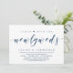 Cartão de convite de casamento furtivo temático azul naval moderno e elegante (Almoce conosco, os Recém-Casados). É perfeito para a sua celebração casual de casamento furtivo à beira do lago.