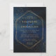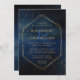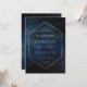 Este convite de casamento de galáxia aérea é perfeito para um casamento moderno e caprichoso. A design apresenta uma galáxia azul-marinho escura com estrelas e uma estrutura geométrica dourada.