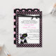 Convite de casamento fofo feito em preto divertido, com fundo de bolinhas rosa. Uma área de texto branca sobre o fundo é decorada com gráficos de desenho animado adoráveis de dois gatos pretos amorosos e uma fita preta dupla no topo. Todo o texto é personalizável para atender às necessidades do seu casamento. Convite de casamento encantador para amantes de gatos para o casal que ama diversão.