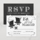 Cartões de Resposta de Casamento Gay para Homens. Chapéus altos elegantes e estilosos para Sr. e Sr. em cartões de resposta de RSVP de casamento casuais, mas elegantes. Estilo de lousa vintage com tipografia retrô mista. Perfeito para casamentos rústicos modernos com um toque sofisticado de diversão para os noivos gays modernos e tradicionais. Convites combinando disponíveis em vários tamanhos e estilos.