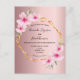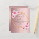 Um convite para o casamento tropical de verão elegante. Com uma falsa estrutura geométrica de ouro decorada com hibisco de rosas claro, flores tropicais com um pouco de verde. Um fundo metálico rosado e sujo. Os nomes da noiva e do noivo são escritos com um moderno roteiro de estilo. Texto preto. Traseira: fundo metálico rosado e rosado. Dica: Se você não quiser que pareça um cartão postal, clique em personalizar, vá para o verso e remova o divisor e o carimbo de posto.