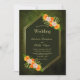 Um elegante convite de casamento floral verde geométrico e dourado.