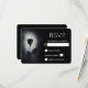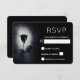 Um convite de casamento sombrio e misterioso com uma ilustração legal de uma rosa preta em estilo goth/emo com sangue vermelho pingando de suas pétalas. Um fundo preto desgastado com uma cor bege no centro destacando essa rosa sombria e macabra.