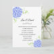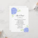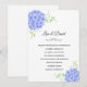 Este convite para o casamento é mostrado em um layout clássico em uma cor branca de fundo com uma adorável impressão de arte azul hydrangeas. Personalize este item, retire o texto de exemplo e coloque suas informações.