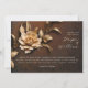 Convite de Casamento Horizontal da 'Coleção de Reverie Teatrais'. Escolha de fundo encantador — azul, roxo real, verde, marrom-ferrugem, preto de carvão e vermelho de teatro — cada um enfeitado com uma folhagem de flores metálicas 3D em ouro elegante. Esta design horizontal define a palco de uma celebração de casamento cheia de drama, romance e sofisticação do eterno.