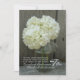 Um convite de casamento com uma foto na frente de um pote de híbridos sobre um pano de fundo de madeira. Personalize o texto na frente e atrás com detalhes da sua ocasião. A redação é dos pais da noiva.