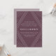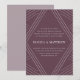 As linhas modernas e limpas do nosso convite ao casamento do Império são uma nod para o estilo clássico do deco de arte, atualizado para um olhar geométrico. Seus detalhes de casamento são exibidos em branco nítido em um fundo roxo elegante de beringela com elementos finos de linha decorativa em branco. Uma bela escolha para casamentos do outono de 2017 em uma rica e luxuosa sombra de berinjela.