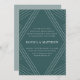 As linhas modernas e limpas do nosso convite ao casamento do Império são uma nod para o estilo clássico do deco de arte, atualizado para um olhar geométrico. Seus detalhes de casamento são mostrados em branco nítido em uma elegante sombra de tom de joia Jasper que é uma mistura de verde escuro e verde caçador. Elementos finos de linha decorativa branca adicionam charme geométrico e enquadram lindamente seus detalhes de casamento.