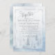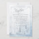 Convite de Casamento | Silver Blue Winter Wonderland - Design original por ©WhimsicalArtwork™ - Uma cena de inverno em aquarela prateada e azul com pinheiros perenes pintados à mão e neve suficiente nos galhos para lembrá-lo de um dia de inverno fresco na floresta - envolto em uma sobreposição branca translúcida em uma moldura prateada e azul - encimado por uma caligrafia manuscrita em cinza e você terá o convite perfeito para casamento de inverno, chá de bebê ou aniversário. A combinação de caligrafia manuscrita com um layout de texto minimalista e contemporâneo torna-o um conjunto de convites de casamento no estilo da moda. Este é parte de uma coleção de papelaria de casamento com acessórios de casamento correspondentes pela BarefootBride™.