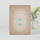 Uma estoque de cartão inspirou o convite para o casamento de acampamento apresentando uma ilustração de uma lanterna azul clara com chama em forma de coração e uma borda de espiral.