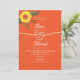 Moderno - convite para o casamento de cor laranja e magenta floral retro, elegante, boêmia, colorida, com corda de ouro romântica, girassóis, monograma de volta e caligrafia manuscrita.