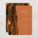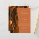 A borda esquerda deste elegante convite de casamento moderno apresenta uma laranja queimada e uma aquarela marrom aparada com falsa brilho dourado. O texto personalizável combina manuscrito colorido de ouro pálido, fontes copperplate e itálico em um fundo laranja queimado. O lado inverso apresenta um design agate correspondente.