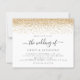 Um valor para o alternativo do ORÇAMENTO em tamanho menor de 4,5 x 5,6" de semirbrilho de 110 lbs, que é de espessura semelhante a um cartão postal (no entanto, não é adequado para uso como cartão postal). POR FAVOR, OBSERVE QUE HÁ UM convite por folha. Dourado Elegante de Orçamento Faux Glitter Wedding Convite Branco. Uma borda de ouro-rosa está em cada lado, e The Wedding Of em um roteiro de estilo manuscrito. Personalize facilmente o texto para seus próprios detalhes. Você também pode alterar as cores do texto e do plano de fundo por meio da opção personalizar mais, se desejar.