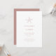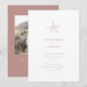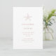 Este design de convite para o casamento é uma mistura perfeita de elegância e vibes de praia. A principal característica do convite é um pequeno motivo de estrela branco que se senta graciosamente no centro do fundo de cor terracota. O motivo do peixe-estrela é intricadamente projetado e adiciona um toque da natureza ao convite. A cor de terracota do fundo é quente e convidativa e define o tom para um casamento à beira-terra. A tipografia usada nesse design de convite é branca clássica, que acrescenta um toque de sofisticação e garante que o texto seja fácil de ler. O estilo de fonte usado é limpo e moderno, criando um aspecto de eterno que nunca sairá da moda.