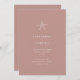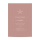 Este design de convite para o casamento é uma mistura perfeita de elegância e vibes de praia. A principal característica do convite é um pequeno motivo de estrela branco que se senta graciosamente no centro do fundo de cor terracota. O motivo do peixe-estrela é intricadamente projetado e adiciona um toque da natureza ao convite. A cor de terracota do fundo é quente e convidativa e define o tom para um casamento à beira-terra. A tipografia usada nesse design de convite é branca clássica, que acrescenta um toque de sofisticação e garante que o texto seja fácil de ler. O estilo de fonte usado é limpo e moderno, criando um aspecto de eterno que nunca sairá da moda.