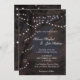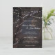 Esta árvore romântica com luzes de cordas, convite de casamento, tem iniciais esculpidas em um coração na árvore. Simples elegância e charme rústico do país.