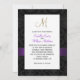 A elegância sofisticada é transmitida por este belo design de convite de casamento. Um preto na cor damasco preta serve de fundo para um efeito fotográfico do M Dourado Metálico e uma fita de cebola roxa e um broche de diamante TODOS IMPRESSOS nos Convites de Casamento de CARTÃO FLAT. Uma forma perfeita de convidar seus convidados para o seu casamento. cor damasco temporária, porém clássica, com um design que lhe permite personalizar a frente com seus nomes e a parte de trás pode adicionar seu texto de convite de casamento personalizado. O convite para casamento está definido para o monograma inicial "M". Para outras cartas, entre em contato com o designer em luxuryweddinginvitations@gmail.com. Design de layout por Elke Clarke©. Gráficos licenciados. Além disso, escolha entre várias fontes e belos papéis para fazer seus convites de casamento PERFEITO!