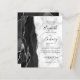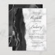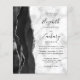 A borda esquerda deste elegante convite de casamento moderno apresenta uma coloração aquosa preta e borda agitada com falso brilho prateado. O texto personalizável combina manuscrito preto, fontes em copperplate e itálico em uma cinza e fundo de mármore branco. O verso apresenta um design de agata preto e prateado correspondente.