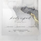 Elegantes tons dourados e tons de cinza e preto de tinta alcoólica acentuados com veias douradas como as que você veria em uma bela geoda de mármore - tudo em um convite de casamento com cartão de resposta com escolha de refeição pré-endereçado e desmontável para que seus convidados possam facilmente devolver por correio - adicione sua foto e adicionamos um filtro preto e branco para criar uma foto em preto e branco a partir da sua foto, para combinar melhor com o tema preto e branco.
