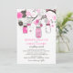 Convite Whimsical com masons rosa-quente, potes, flores e aves-vivas. Isto é parte de uma suíte de casamento. Itens correspondentes estão disponíveis na minha loja.