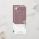 Um convite de casamento mauve tudo em um com folhas de verde botânico rústico e tipografia elegante. O convite inclui um cartão de RSVP que pode ser destacado e detalhes de informações para convidados. Criado por Thisisnotme©