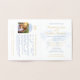 A seção de fotos é impressa no verso da capa externa, de modo que a página com o texto do convite se destaca. Os cartões já estão marcados - não é necessário fazer mais alterações. Este design imprime com sua escolha de DOURADA OU PRATA REAL para um visual chique.