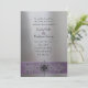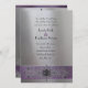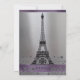 Este convite extravagante do casamento com dom de Paris incorpora uma silhueta da torre Eiffel, da guarnição floral sparkly, e do brilho metálico roxo e de prata.