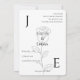 Um convite de casamento sofisticado e minimalista, que inclui uma elegante arte branca e preta desenhada à mão. A design inclui um rosa gracioso, pombos pacíficos e letra na moda solteiro para um olhar moderno, mas eterno. Perfeito para uma cerimônia de casamento, recepção, anúncio de noivado ou um cartão salva-vidas.