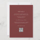 Este convite de casamento completo inclui o convite formal na frente e todos os detalhes adicionais para reservas e rsvp na parte traseira. O creme clássico e as cores vermelhas da burgundy são eterno extra para qualquer casamento. Para facilitar, ele inclui seu código qr personalizado para que seus convidados possam digitalizar.