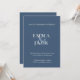 Ponha o tom para o seu dia especial com este convite elegante para casamento, desenhado num azul-mudo impressionante para um efeito novo e moderno. A tipografia moderna limpa em branco nítido cria uma afirmação de simplicidade refinada, enquanto o layout minimalista garante que todos os detalhes sejam fáceis de ler e sem esforço na moda. Ideal para casamentos contemporâneos, esse convite combina elegância azul e branca sutil com uma presença formal, mas convidativa. Todos os elementos, desde a manchete sofisticada e ousada até ao layout limpo equilibrado — refletem um amor pela design moderna e sublinham o charme sofisticado de sua celebração. Perfeito para casais que buscam uma suíte de casamento azul minimalista com uma mistura de sutileza e talento contemporâneo, este convite é o epítome da elegância subestimada.