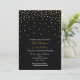 Convite de Casamento Moderno com Pontos de Folha Dourada e Preto. Personalize a frente e verso para qualquer evento.