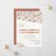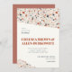 Este convite de casamento moderno apresenta detalhes de pedra terrazzo do momento e tipografia inspirada no meio do século, tornando-o uma ótima escolha para um museu de arte ou local moderno de meados do século e um casal sem frescuras, moderno e na moda que está se casando. Uma paleta de cores de tons inspirados no deserto, como creme, rosa, mauve, ferrugem e azul-marinho, parece neutra, mas cheia de personalidade.