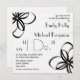 Um convite de casamento moderno com um esquema de cores preto e branco (ou outra cor de fundo de sua escolha). Ilustrações de flor preta nos cantos superior esquerdo e inferior direito. Personalize o texto preto com detalhes da sua ocasião.