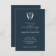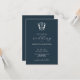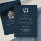 Economize no papel e dinheiro com este convite de casamento monograma com o código QR. Um design simples mas clássico, este convite de casamento apresenta ambas tipografia caligráfica com uma fonte clássica de sans em branco sobre um azul-da-meia-noite. Uma crista elegante molda a noiva e as iniciais do noivo. O cartão se reverte para uma cor azul correspondente ao seu código QR de casamento e espaço para detalhes adicionais. Todas as cores são personalizáveis. Para mais convites de casamento, visite www.zazzle.com/dotellabelle
