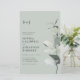 Orçamento Eucalyptus QR Code RSVP Sage Monograma 5.5 x 8.5 Convite de Casamento de Semana. Nosso convite de casamento botânico simples para baratos apresenta uma elegante ramificação de eucalipto com aquarela em tons de sábio e verde empoeirado ao lado do monograma e texto de convite. A parte de trás do convite também exibe o código QR do seu site de casamento, assim como o próprio URL do site, permitindo que seus convidados facilmente RSVP on-line e visualizem todos os detalhes normalmente enviados em um pacote de casamento. O código QR atualizado neste convite permite gerar o seu próprio código QR do site de casamento simplesmente digitando o URL do seu site na modelo de personalização onde indicado. Todo texto de exemplo pode ser facilmente revisado com suas próprias informações sobre o modelo de personalização.